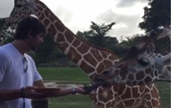 Экзотический отдых: Шовковский покормил жирафа и привлек внимание носорога